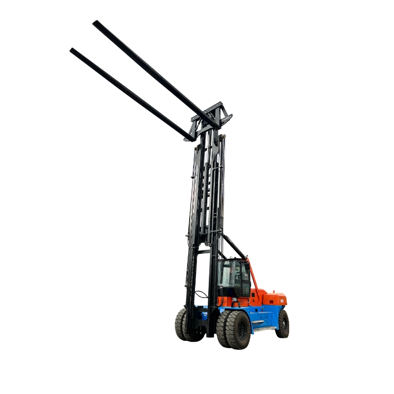 Der SOCMA HNF-200 Marina-Gabelstapler ist für das Heben von Booten in Yachthafen-Umgebungen ausgelegt, mit einer Nennlast von 20 Tonnen, einer maximalen Hubhöhe von 10 Metern und einer Negativhubfunktion, um Boote aus dem Meer auf den Anleger zu heben. Sein schwenkbares Gabelstaplerdesign ermöglicht Trennung und Zusammenführung und erhöht die Betriebsflexibilität.